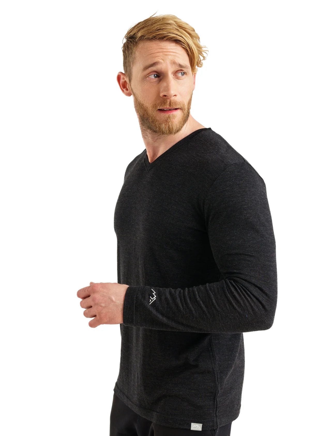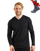 Men's Merino Long Sleeve 165 Heathered Black V-neck