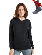 Women's Merino Long Sleeve 165 Heathered Black V-neck