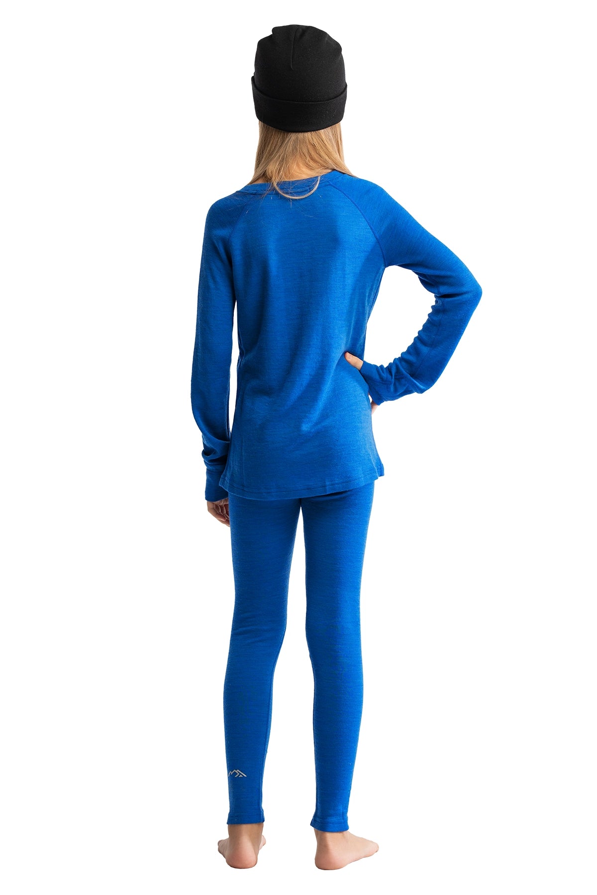 Kids’ Merino Wool Thermal Set 250 Cobalt Blue + Black Beanie