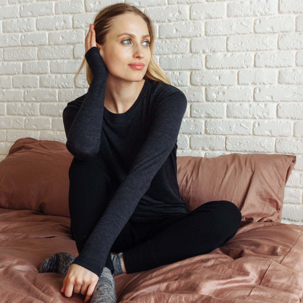 Elevate your warmth and style with our Women's Merino Thermal Set in the sophisticated Charcoal hue.