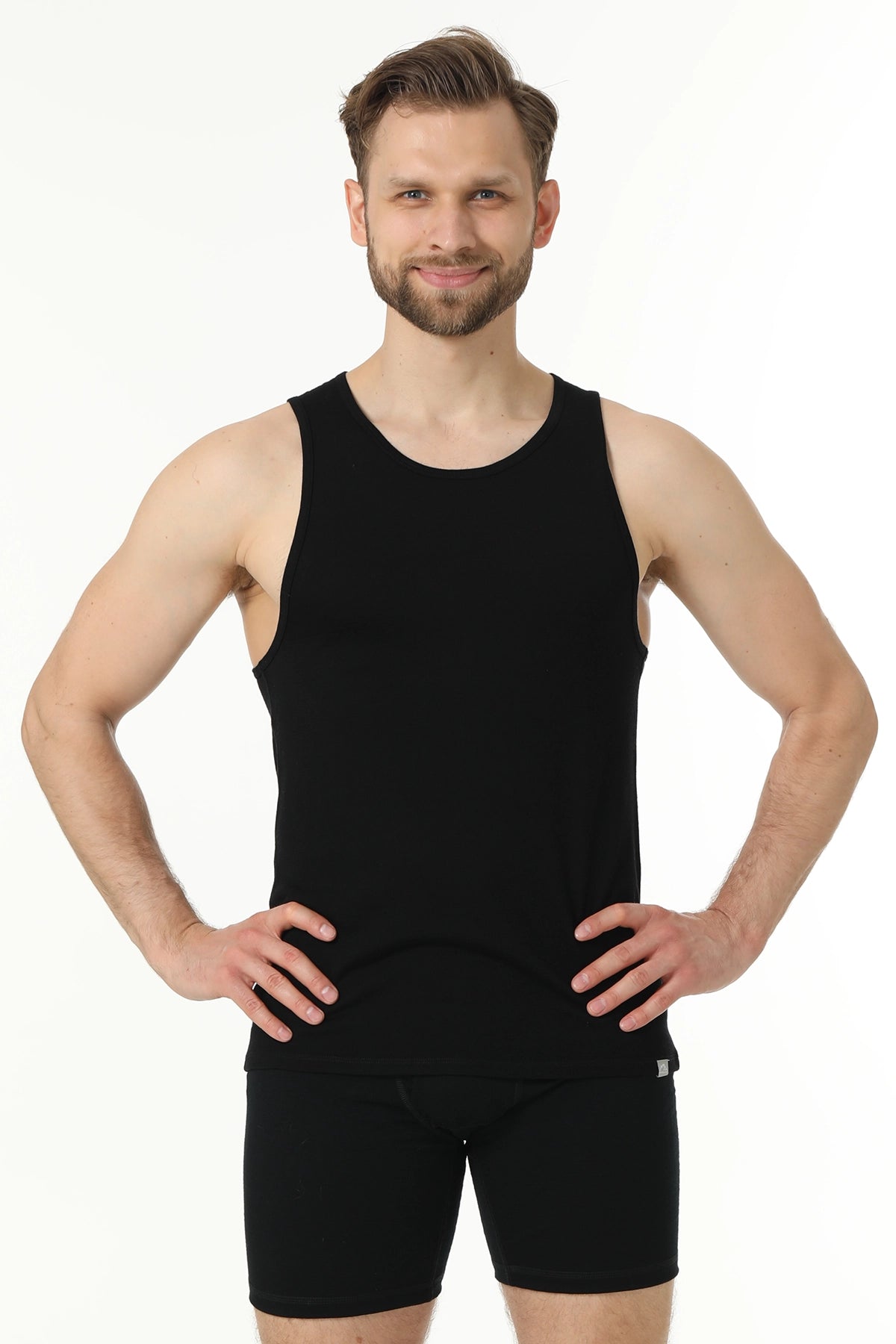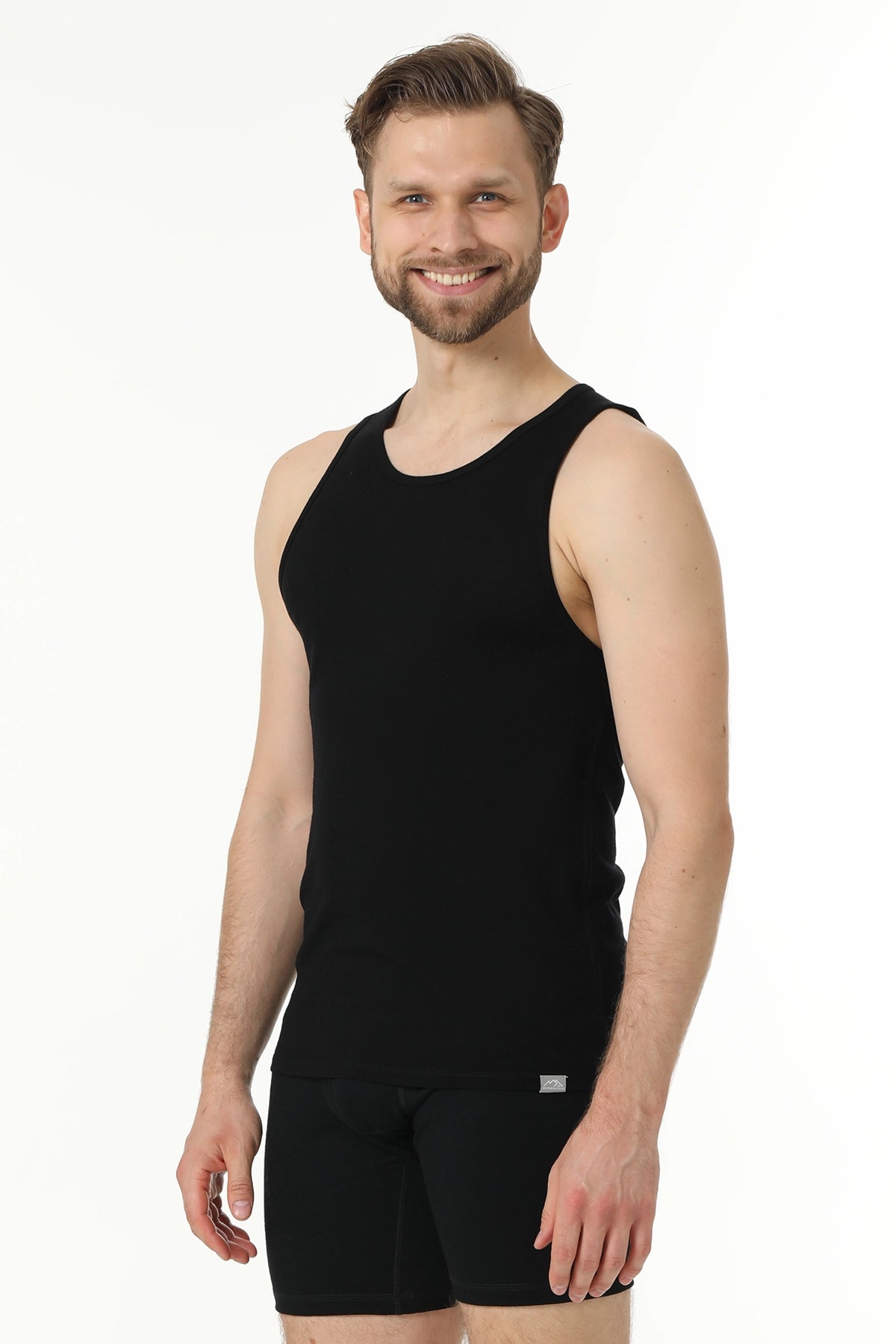 Men's Merino Wool Tank A-Shirt 180 Black