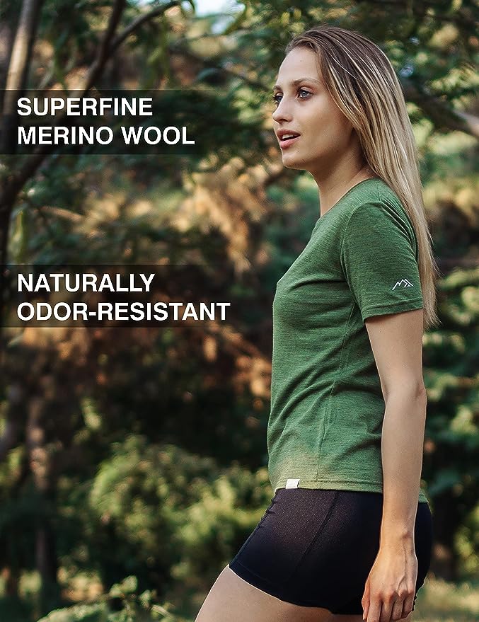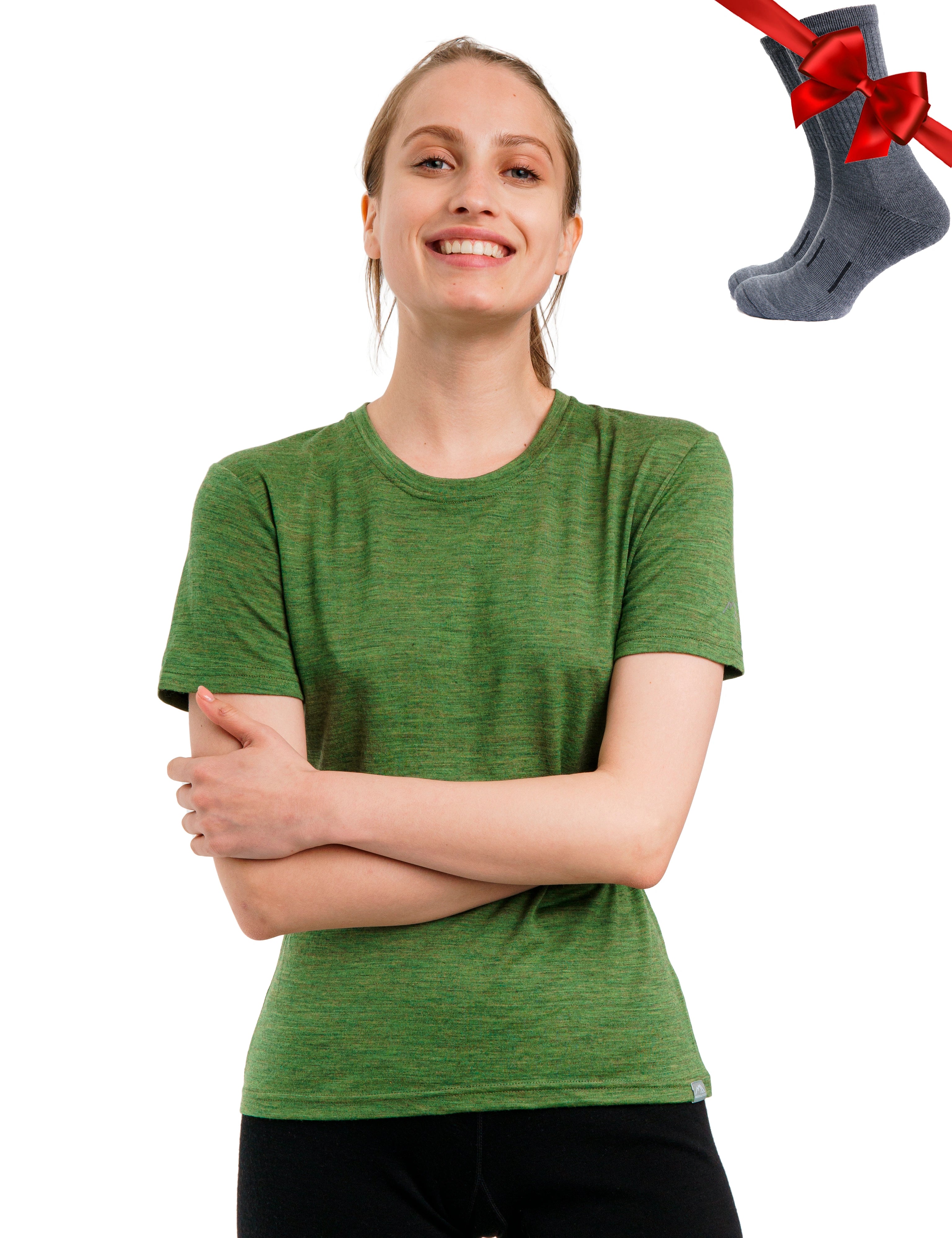 Women's Merino T-shirt 165 Forest Green | Crewneck (+socks)