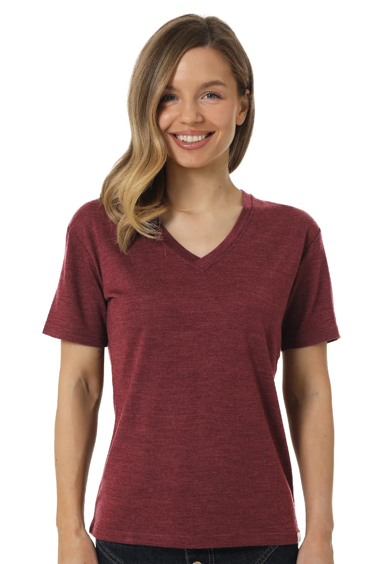 Women's Merino T-shirt 165 Burgundy | V-Neck (+socks)