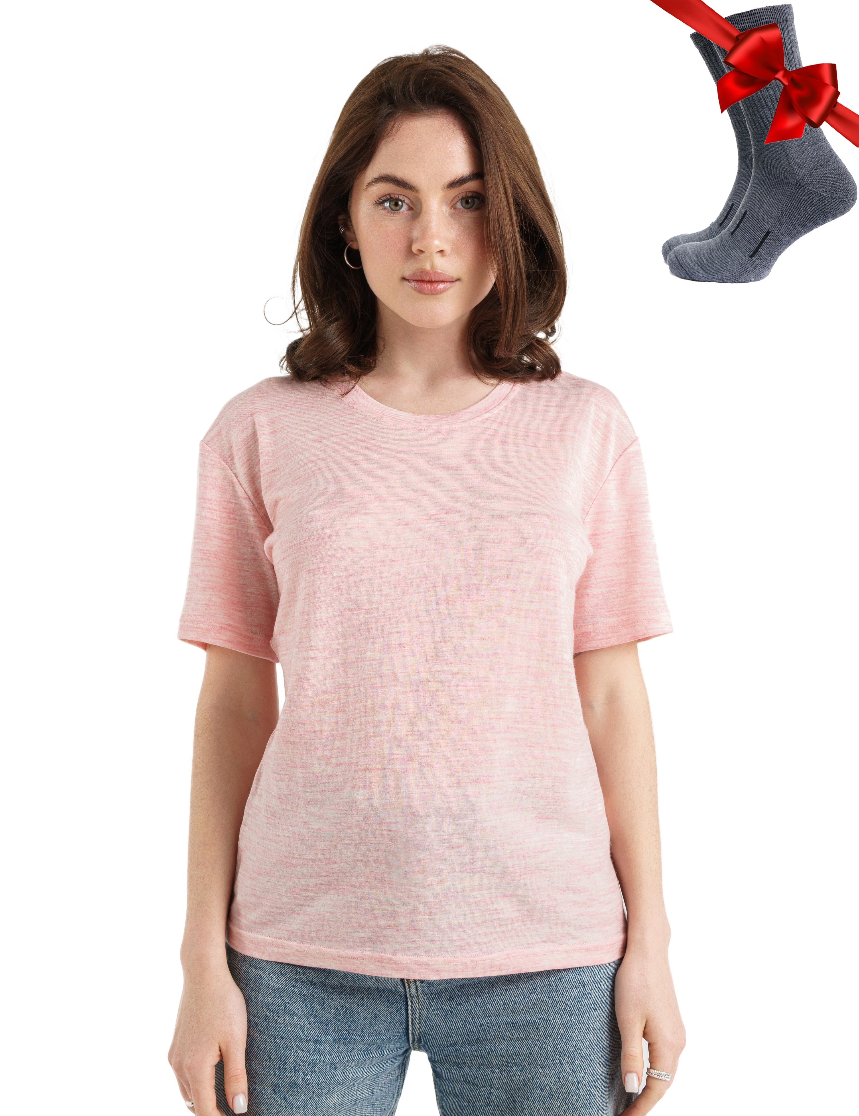 Women's Merino T-shirt 165 Heather Pink | Crewneck (+socks)