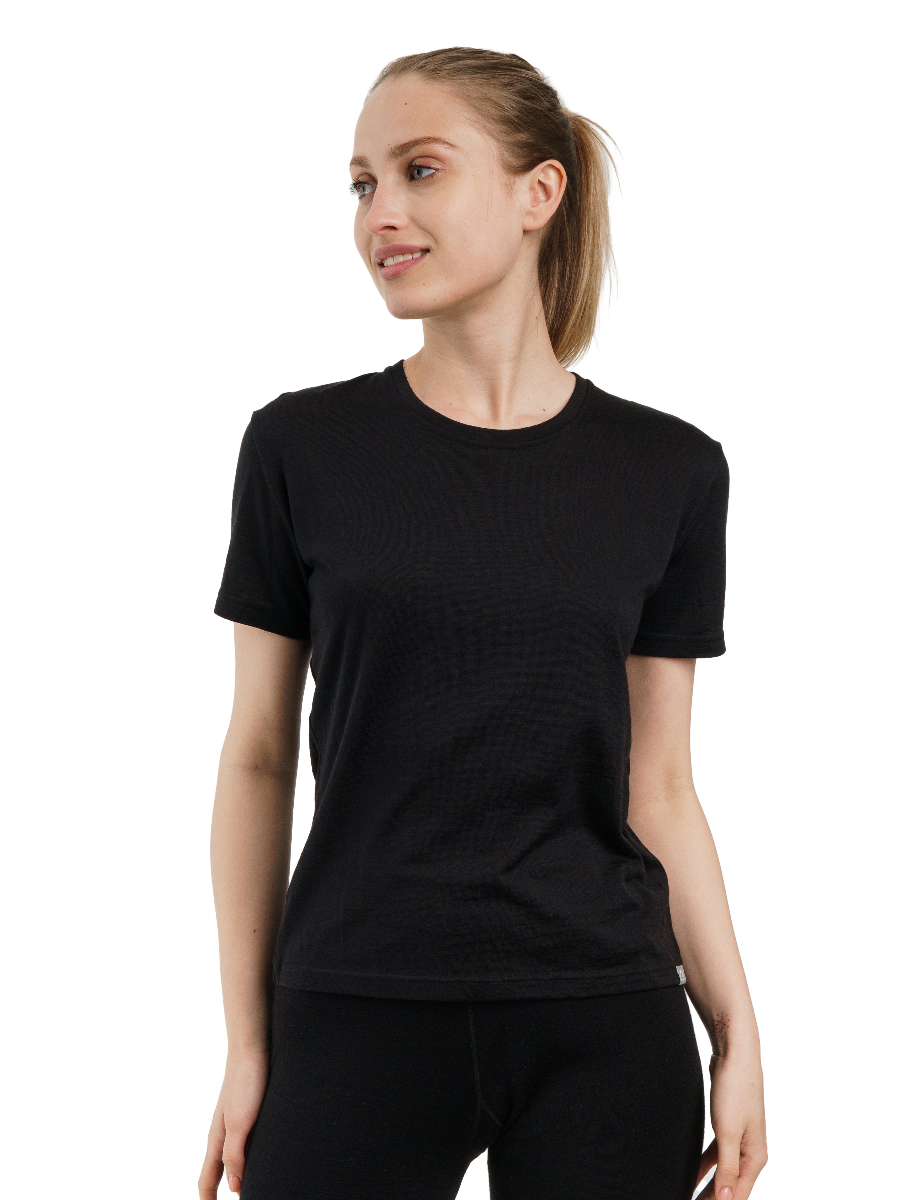Women's Merino T-shirt 165 Black | Crewneck (+socks)