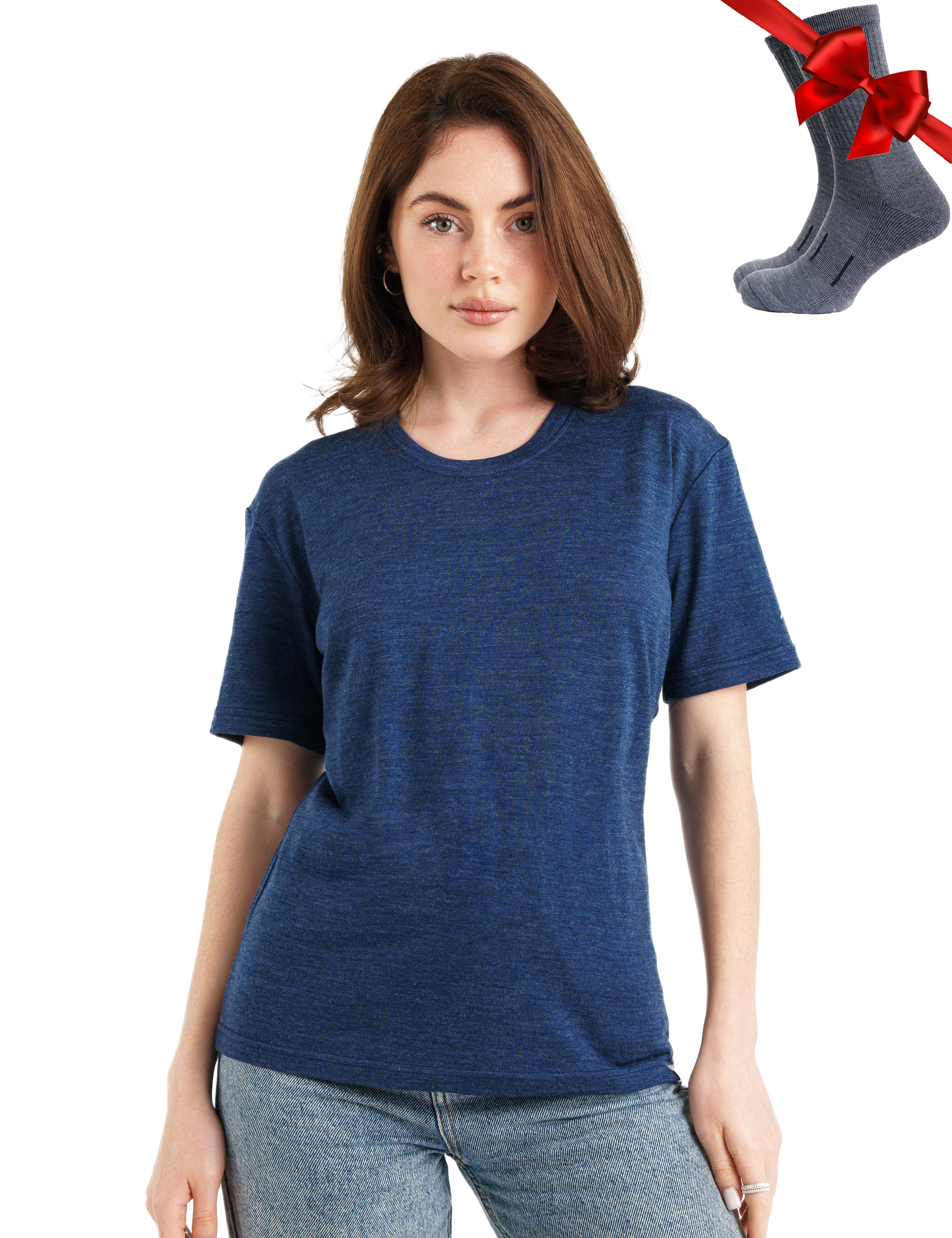 Women's Merino T-shirt 165 Navy | Crewneck (+socks)