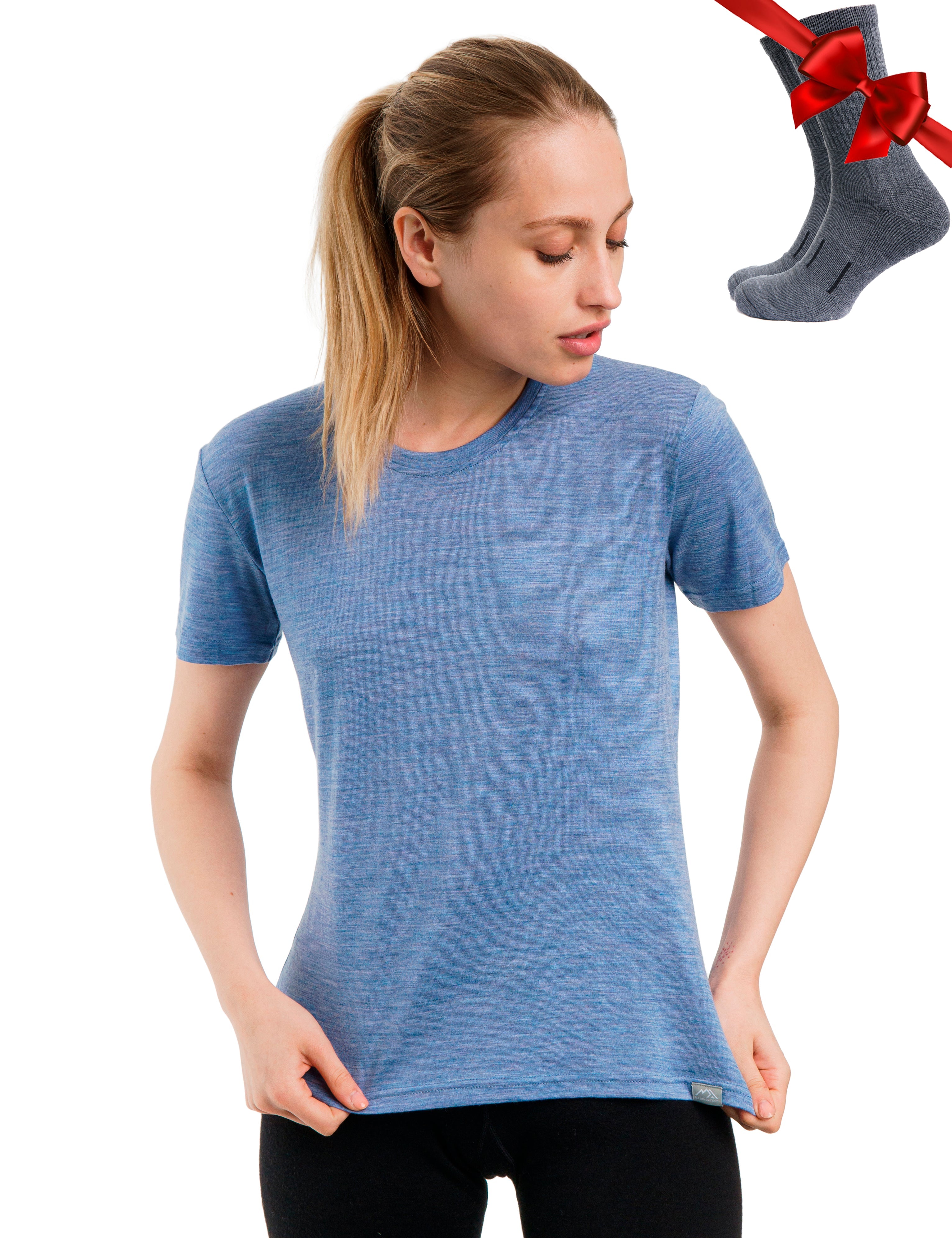 Women's Merino T-shirt 165 Denim Blue | Crewneck (+socks)
