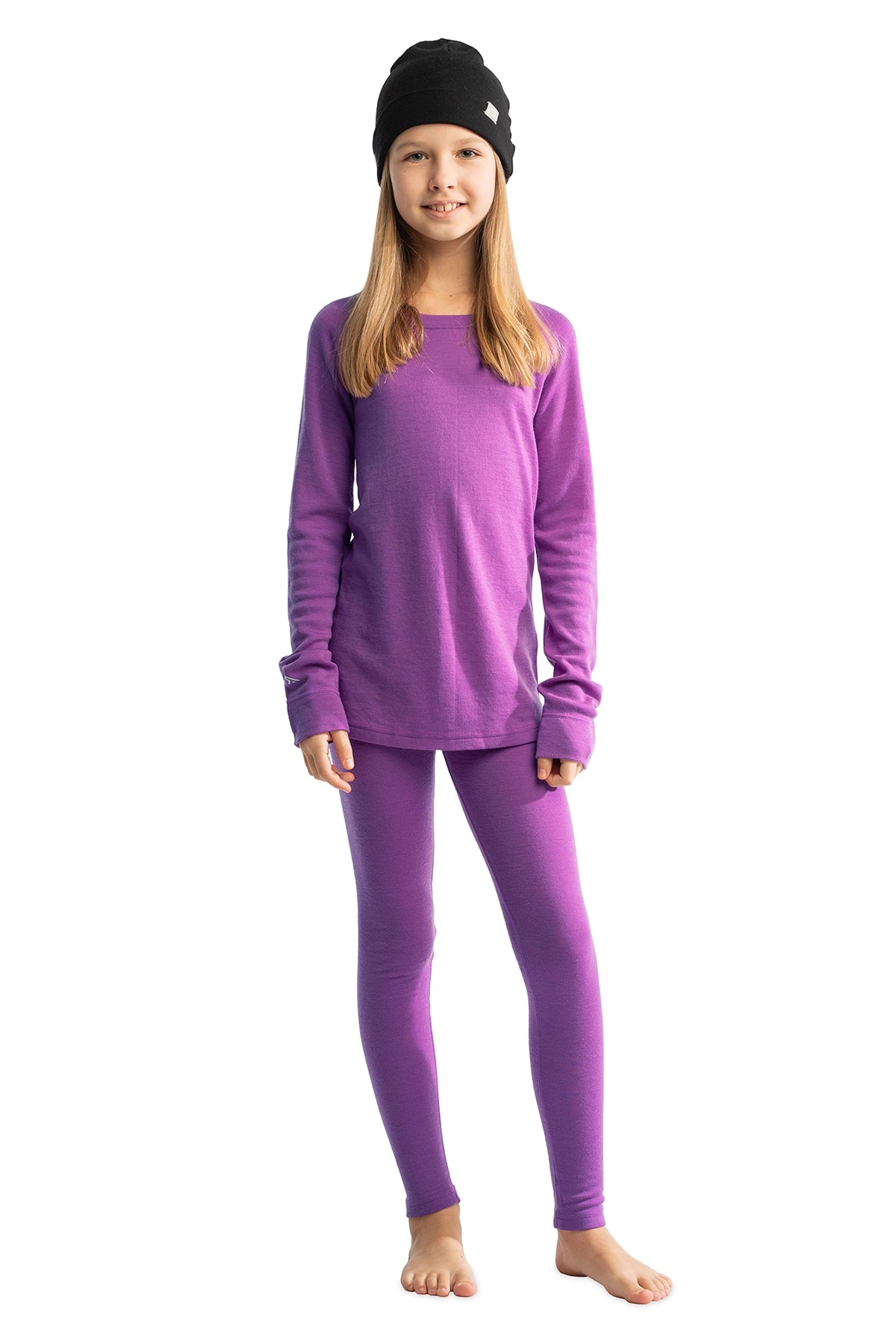 Kids’ Merino Wool Thermal Set 250 Violet Purple + Black Beanie