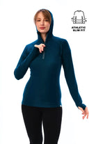 Women's Merino Wool Half Zip Hoodie 190 Deep Teal