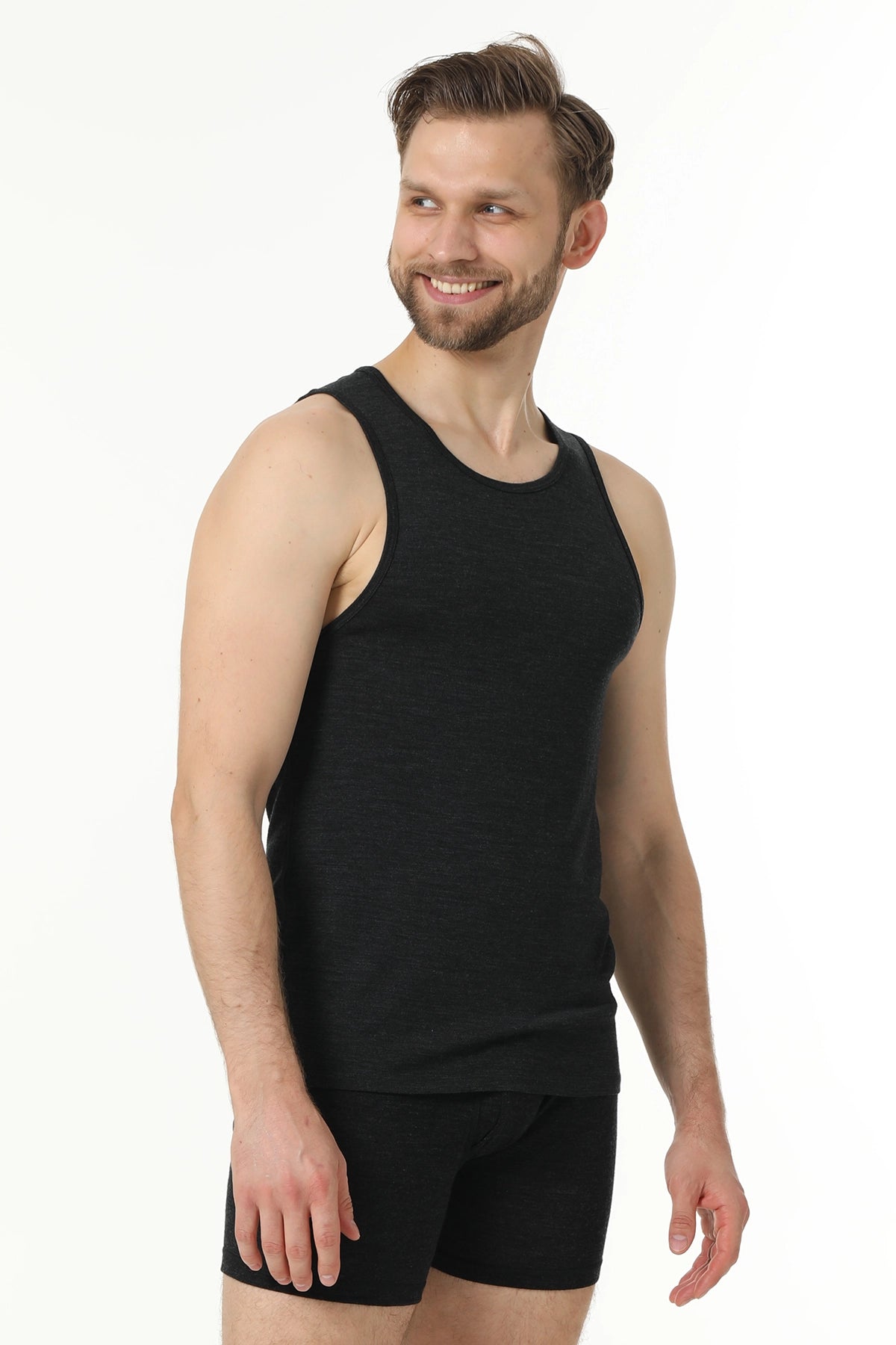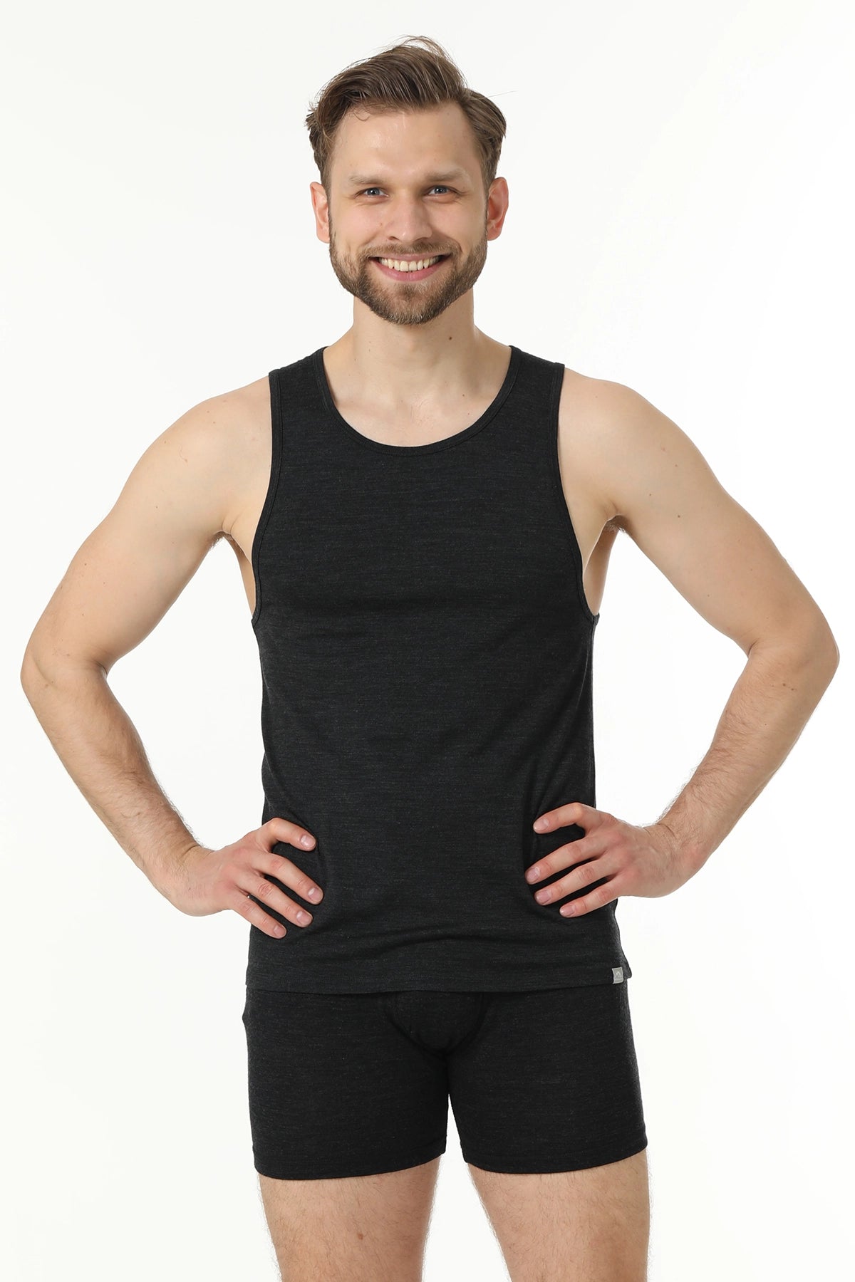 Men's Merino Wool Tank A-Shirt 180 Charcoal Grey
